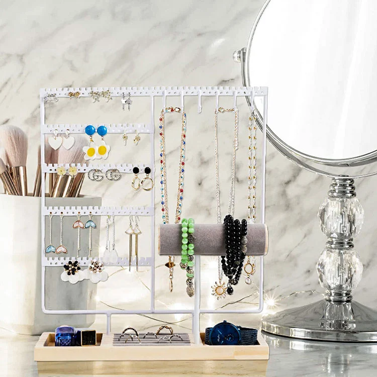 Bien bitartean, kakodun bitxi-antolatzaile bertikal hau metalezko eta egurrezko materialen konbinazioz egina dago, kalitate handiko eta ehundura bikainarekin. Zabaldutako oinarriak iraultzeko aukera gutxiago egiten du. Harekin, bitxiak ez dira modu kaotikoan pilatuko edo aurkitzea zaila izango, eta, gainera, lepokoak nahastea eta korapiloak izatea saihesten du.